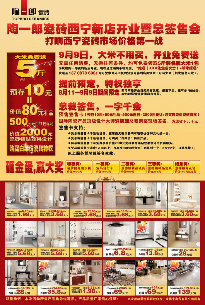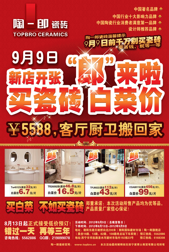西宁陶一郎瓷砖新店开张促销活动开始了,买瓷砖=白菜价