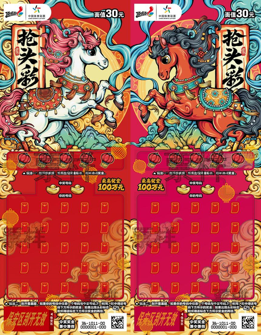 除了精彩的线上互动 体彩顶呱刮 “午马” “骏马贺岁” “马到成功” “抢头彩2026” “新春大吉2026” “为中国力量加油 雪舞龙腾” 6款新春主题即开票也已上市 每一款都独具匠心 将浓浓的年味 和满满的好运送到你身边 从5元到50元不同面值 满足你的多样选择