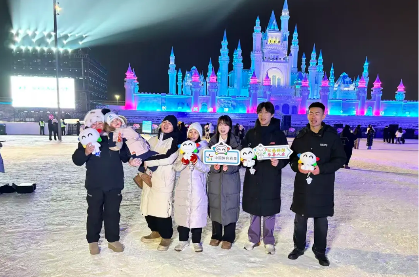 乐园内,雪地足球赛引得观众阵阵喝彩